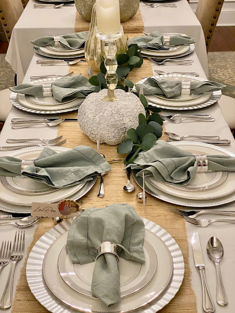 Well, I wanted to share with you the details from our Thanksgiving table. I invested in these pieces last year but all of them are still available. The only difference is the pumpkins in our centerpiece. However, I have found a very close match (that I have seen in person), and not only are they gorgeous but they are also on sale!